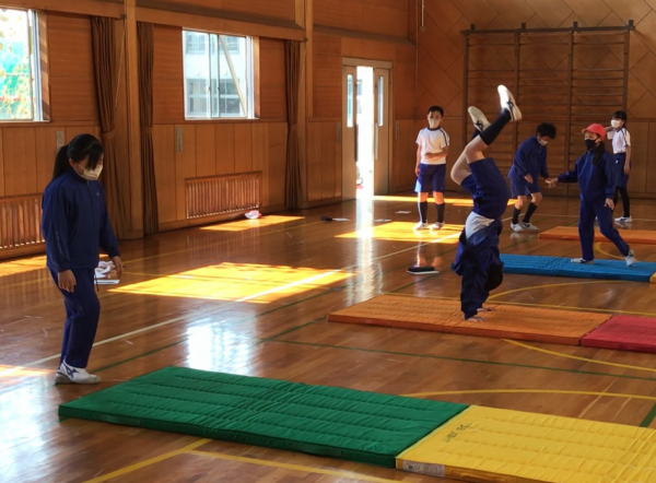 体育は、マット運動に取り組んでいます。今日は、自分の挑戦したい技に取り組みました。後転や、倒立の練習をする4年生が増えてきました。身体の使い方の「コツ」を探しながら、自分の考えた練習方法で、成功を目指します。何度も練習をするうちに、「できた!!」という喜びの声が上がります。ここでも、4年生の精進が光っていました。