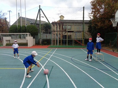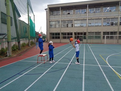 最後は、各コートで試合を少しやってみました。まだ、ルールが少しわかってきた段階なので、今後の練習の中で覚えていってほしいと思います。