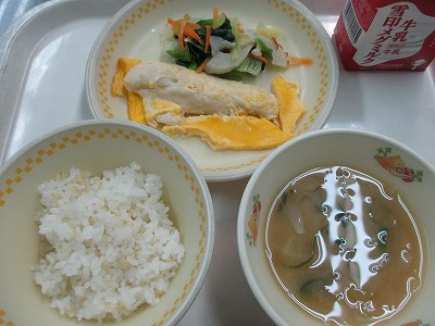 今日の献立は、旬の野菜が2種類ありました。おひたしの「小松菜」味噌汁の「大根」です。おひたしはシャキシャキと、大根はやわらかく、それぞれに食感がおいしい野菜です。小松菜はカロテンだけでなく、カルシウムも豊富なので、免疫力を上げ、骨を強くする働きがあります。ピカタは卵に香ばしく焼き目がついて、ご飯によく合うおかずになりました。
