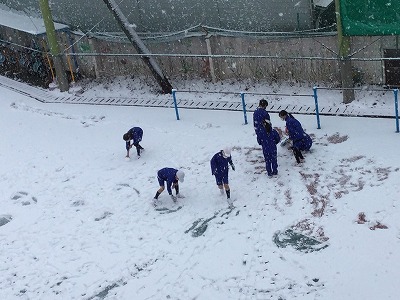 「雪投げは禁止!」の約束で、グラウンドに出かけた5年生。“雪だるま”づくりから、計画がいろいろに変更したそうです。