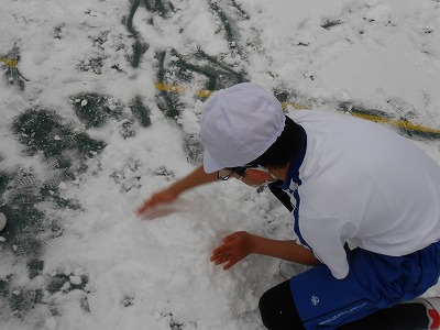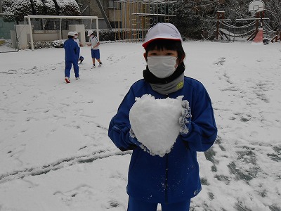 今日は朝から雪が積もり、運動場が銀世界になりました。とても冷えこむ朝でしたが、朝の準備を終えるとみんな一目散に真っ白な運動場へ飛び出します。