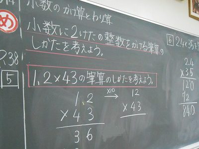 算数の学習では、今週から小数のかけ算について学習しています。前回の授業で学んだ事を生かし、今日は小数のかけ算の筆算に挑戦します。