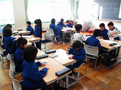 今日の学級活動は、前半に「係のポスター作り」、後半に「全校目標についての話し合い」をしました。