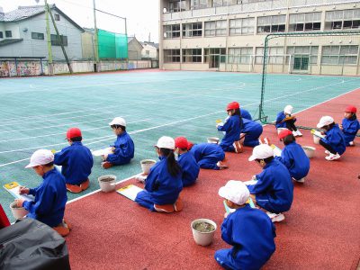 生活科の時間は、チューリップの芽の様子を観察しました。