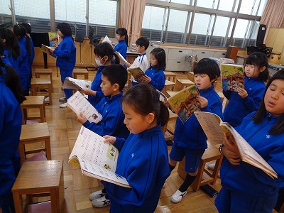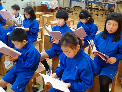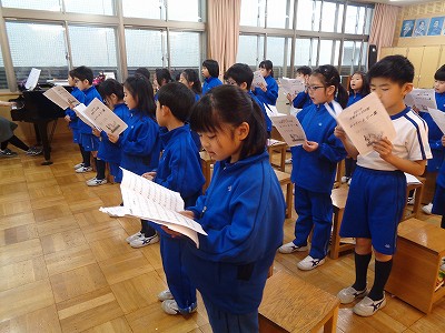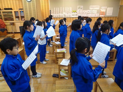 次に「ありがとうの会」で歌う全校合唱の曲「花は咲く」を練習しました。