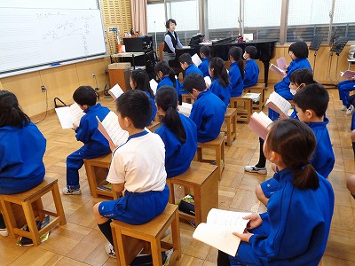 良い姿勢で、きれいな歌声を出すことをめあてに取り組みました。