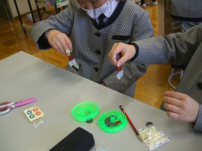 また、クリップをつけたテントウムシに、坂道をのぼらせて遊びました。