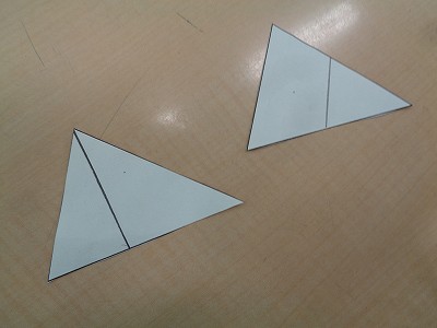 切り分けられた人からノートに三角形の紙を貼り、どのように切ったかの説明をまとめました。