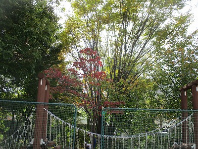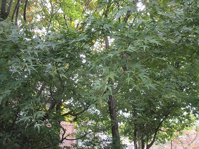 モミジはまだ緑色でした。もう少しすると、赤く色づいてくることでしょう。