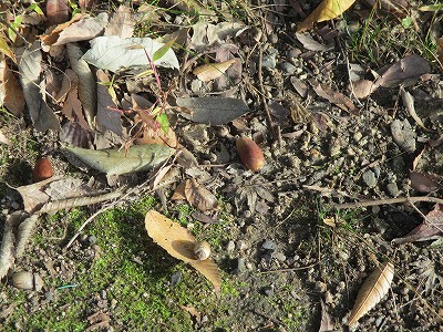 ビオトープでは、ハナミヅキの葉が赤くなっていました。ドングリもたくさん見つけたようです。