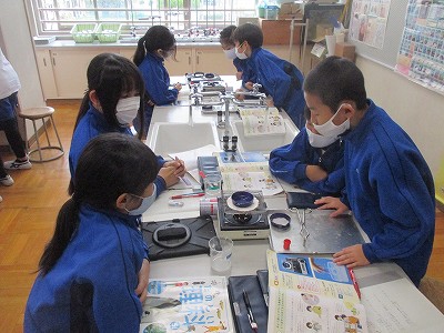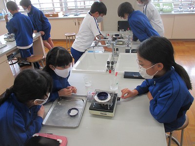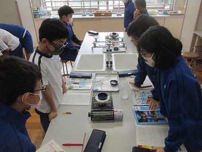 全てのチームで、どちらも結晶を取り出せました。結晶の微妙な特徴も、よく観察してもらいました。最後に、教科書を参考にして、ものの溶け方の特徴をまとめてロイロノートで提出しました。次回は単元最終のまとめです。