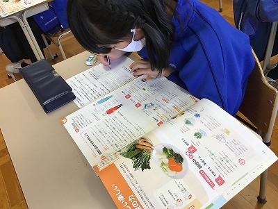 家庭科の時間に扱う野菜は限られています。ご家庭でも、切る前、煮る前、炒める前の野菜を目にする機会が増えるといいな、と5年生に話しています。