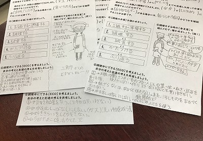 調理の過程で、“ECO(環境にいいこと)”に気をつけるポイントを考えよう!と、投げかけました。