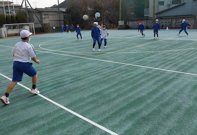 ポートボールの学習を生かして、ボールに集まるのではなく、パスをうまく繋ぐことや、人のいない場所を見つけて走ることなど、1時間目とは思えない、とても上手なサッカーゲームができました。