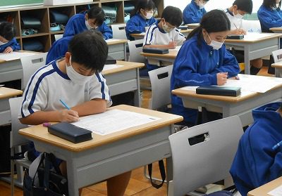 国語の学習は「漢字検定練習」を行いました。4年生は漢検7級に挑戦しています。2月に行われる試験に向けて、特訓のスタートです。