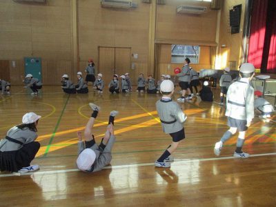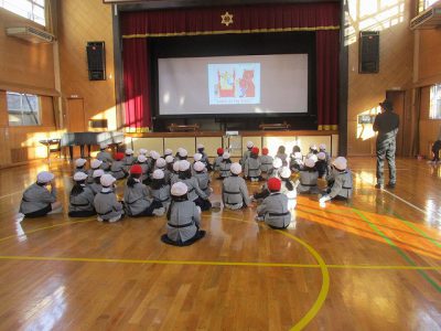 登場人物になりきって、さし足・しのび足・・・・あわてすぎて転ぶ姿等、口を動かしながら、表現豊かに演じました。