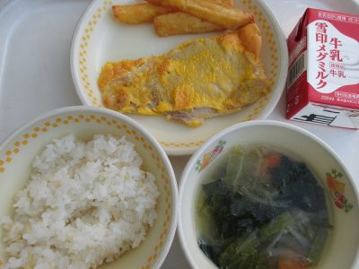 野菜たっぷりのスープは、ほうれん草、キャベツなど、葉物の野菜につく土や虫を落とすため、調理員さんが冷たい水で、丁寧に3回以上洗ってくださいます。