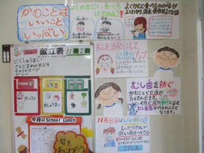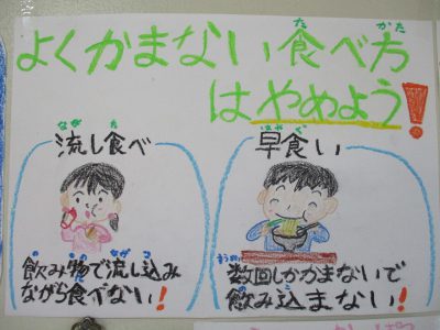 限られた給食の時間内ですが、よくかんで食べることで、食べ物を味わったり、体にとって良い刺激があることを知ってもらいたいです。