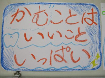そこで「かむことは、いいこといっぱい」の掲示物を作りました。
