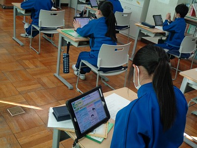 社会は、舞鶴市と他国の関わりについて学習しています。特に、舞鶴市と友好都市・姉妹都市の提携を結んでいる、中国の大連市、ロシアのナホトカ市、イギリスのポーツマス市の3つの都市について、役割を分担して調べ学習を行いました。これらの都市は、どうして舞鶴と交流を深めることになったのだろうという疑問にせまります。