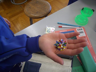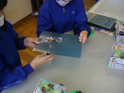 最後に、細かいモールを磁石につけ、磁力を見えるようにして遊びました。