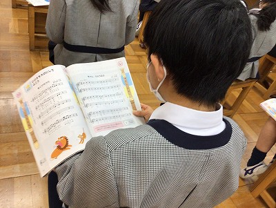 また、模範演奏のCDに合わせて、下のパートを階名で歌う練習も行いました。
