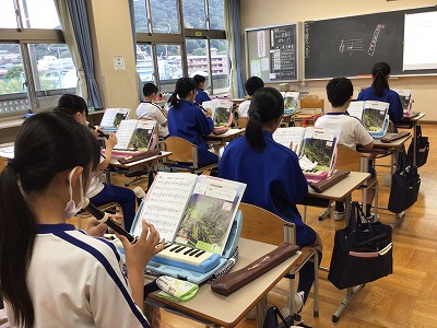 “フォルクローレ”という南米の音楽をもとにした曲「♪風とケーナのロマンス」のリコーダー奏を練習しています。
