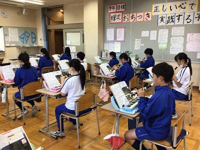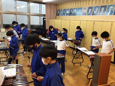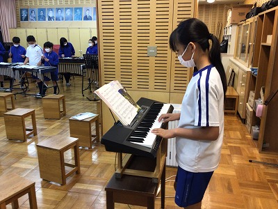 残りの時間に音楽室へ戻り、木琴・鉄琴・ピアノ・オルガンを使った合奏練習をしました。