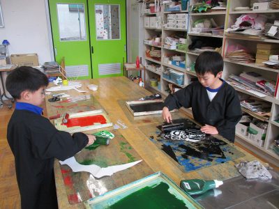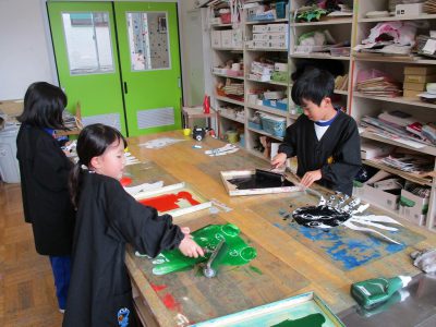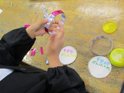 刷った後、版画用インクが乾くまでの間は、「6年生へのプレゼント作り」をしました。