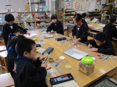 今日の図工は、「紙版画」と「プレゼント作り」をしました。