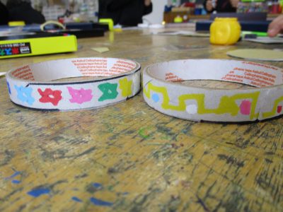 セロハンテープの芯を使って、メダルを作ります。