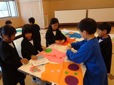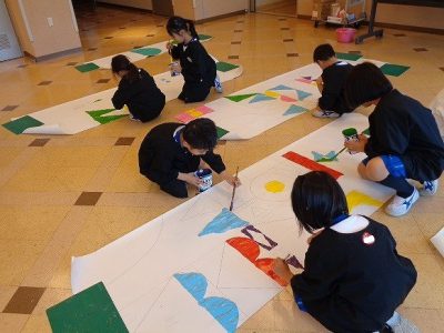 今日の図工の時間は、発表会の舞台背景と衣装作りに取り組みました。