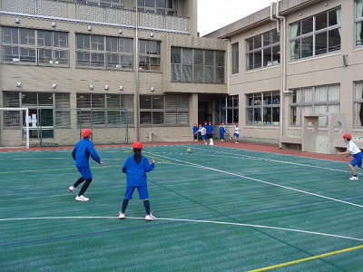 遠くへ飛ばして大量得点をねらう作戦、人がいないところや少ないところをねらって確実に点を取る作戦など、チームでねらいを持って楽しんでいました。