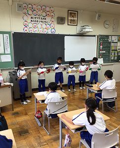 「教室の後ろまでしっかり聞こえる声で読めるように」をポイントにして読む練習をしました。