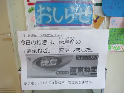 ねぎの煮物には京都の「九条ねぎ」を使用する予定でしたが、野菜の価格が高騰のため、徳島県産の「渭東ねぎ」に変更しました。甘みのあるおいしいねぎでした。