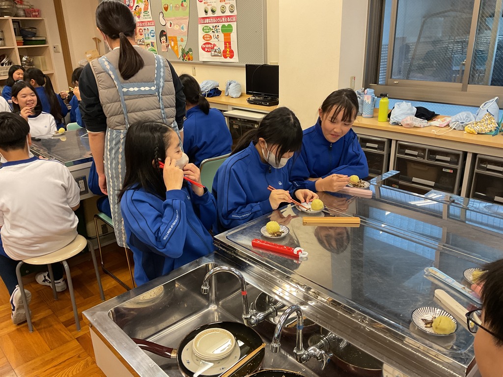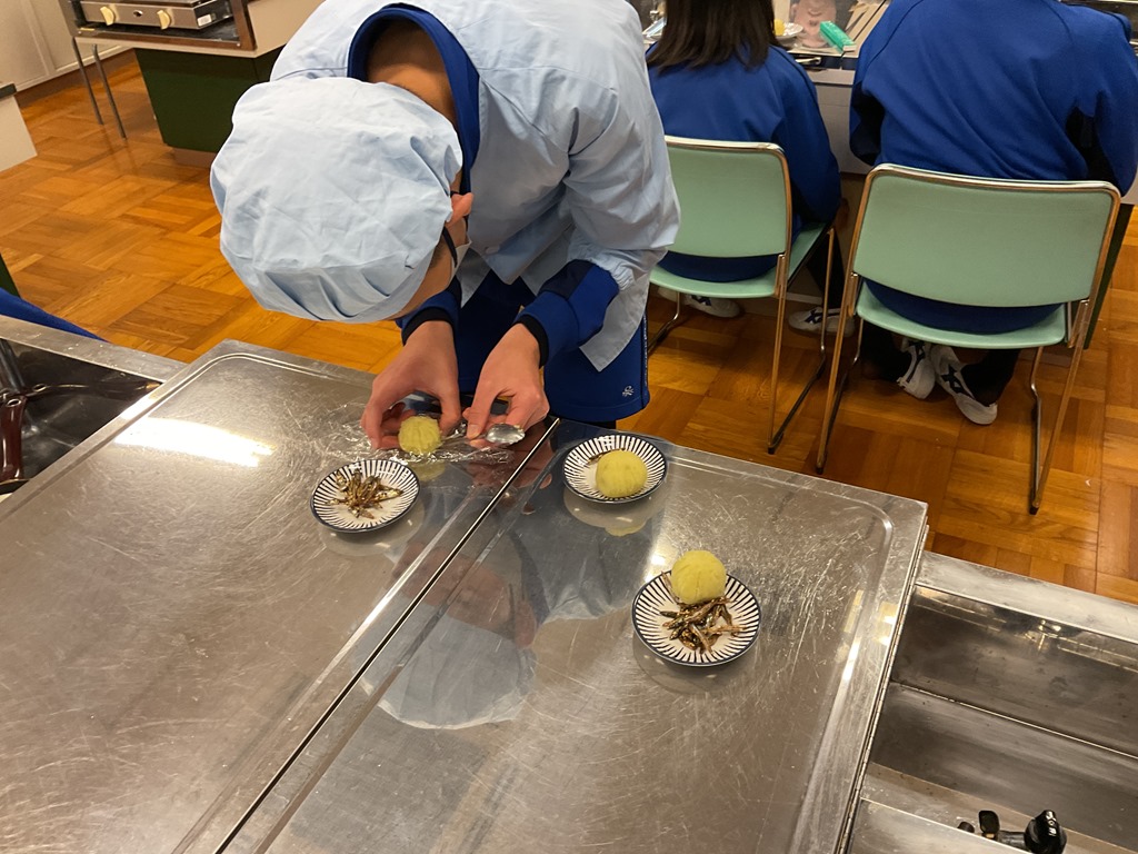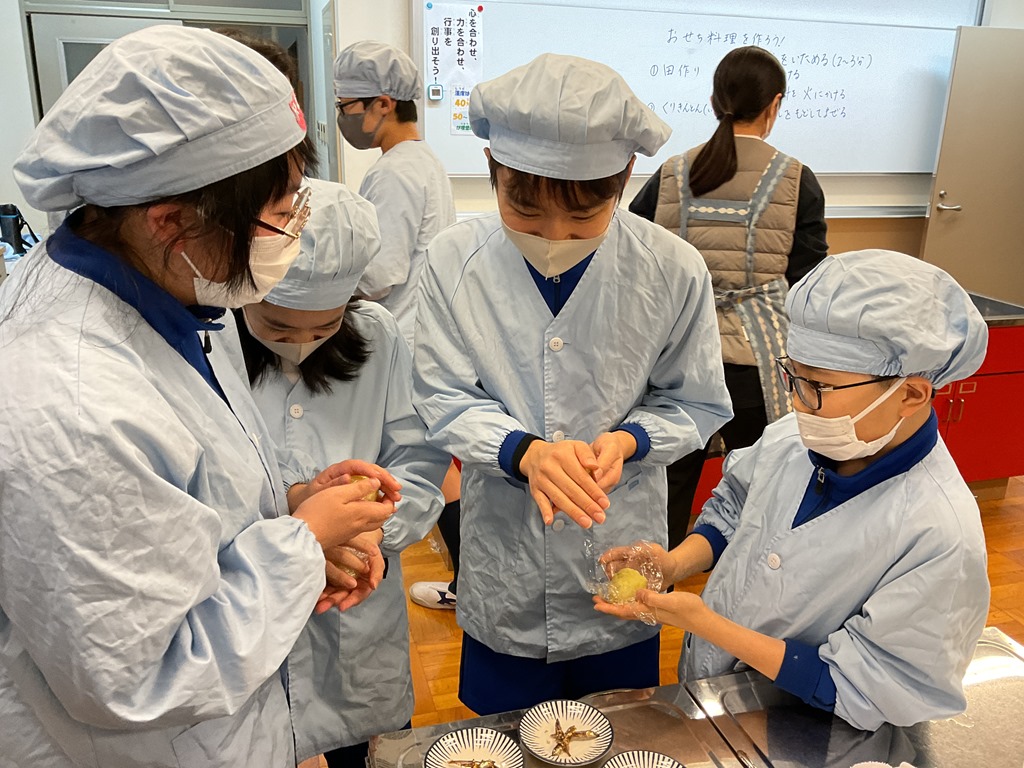 日本の和食文化について理解を深めるために、今日はおせち料理の「ごまめ」「くりきんとん(さつまいもを代用)」を作りました。