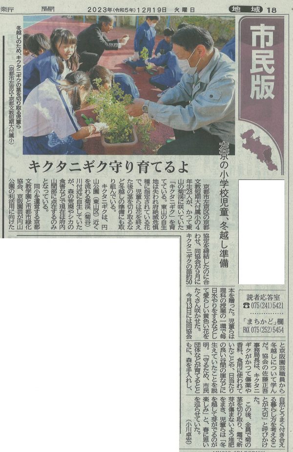 12/19火【「キクタニギク栽培活動」が京都新聞に掲載】