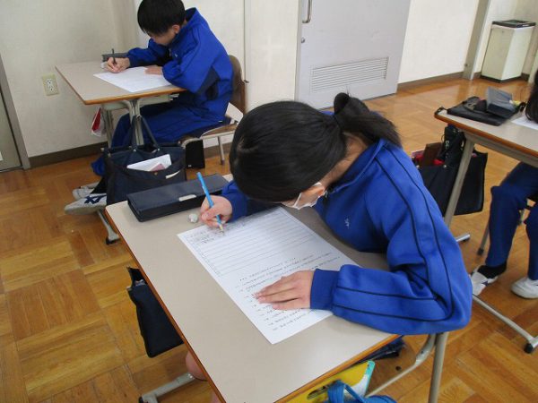 開始の合図で、全員がテスト用紙に向かい、合格点を目指して、真剣に漢字を書く姿が見られました。