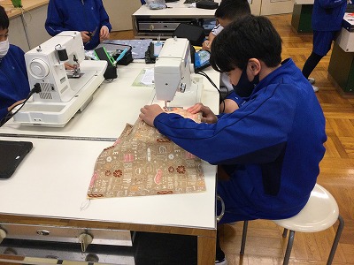 ミシン実習最後の活動「ランチョンマット製作」が、いよいよ完成に向かった時間でした。