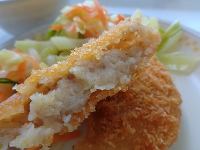 油で揚げて調理するコロッケは、サクサクの食感です。