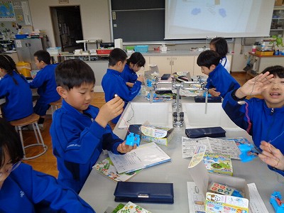 2時間目の理科は、豆電球の明かりをつける学習をしました。