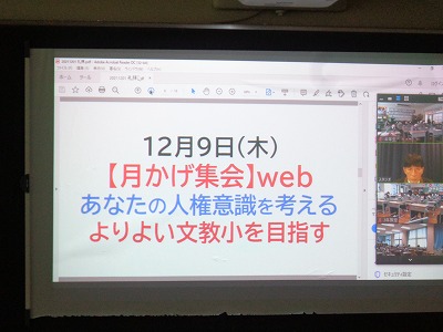 今回もスクリーンを通した会合になりますが、みんなで立ち止まって考え、人権意識を高めることで、より良い人・より良い学校を目指します。