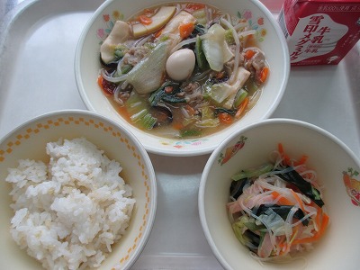 ☆ 春雨サラダは、キャベツ、人参、わかめ、ハムを合わせました。