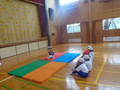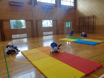 前半はなわとび、後半はマット遊びをしました。
