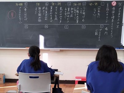 教科書を読みながら、季節の言葉を探し出し、その季節の様子や場所についてを把握して情景をつかみました。描かれた情景の中から、次は登場人物の気持ちの変化についてを考えていきます。