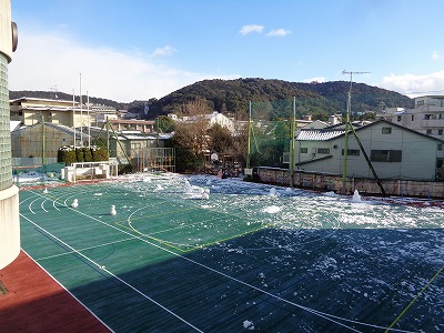 2階の図書室からも眺めてみました。子ども達がいきいきしています。