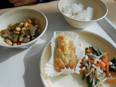 ☆ 五目豆は、こんにゃく、ごぼう、人参、三度豆を合わせました。