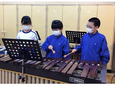 “沖縄風な音階”を使ったグループの1組目です。マリンバを3オクターブ使って、リレーのように演奏していき、4つめのメロディが終わるとき、全員で同じ音を“トレモロ”してフィニッシュを迎えてくれました。作品「なつかしい町」です。