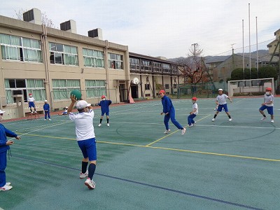 3時間目は、ポートボールです。今日は、授業のはじめに「ポートボールでのルール」について、もう一度みんなで確認しました。試合を重ねる中で、技術が上達すると、試合が激しくなり怪我につながる恐れがあります。それを避けるために、反則やルールがあることを確認し、ルールを守ることを意識して試合に取り組みました。