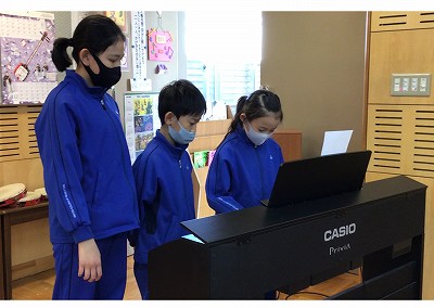 “日本音楽の音階”を使ったグループ2組目です。自分の作ったメロディを繰り返して演奏することで、聞いている人に強い印象を与えるように伝わりました。テーマがなかなか決まらなく、発表の時間が来てしまいました。「日本の春」と紹介し披露してくれたメロディに大きな拍手が沸きました。